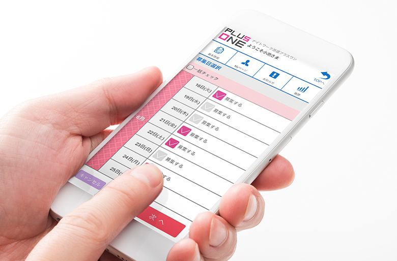 いつでも募集がかけられます店舗様専用管理システムなら、キャストの出勤確定状況の把握や、最大1ヶ月先までのキャストの募集、年齢や容姿レベルで絞り込んでの募集も可能です。