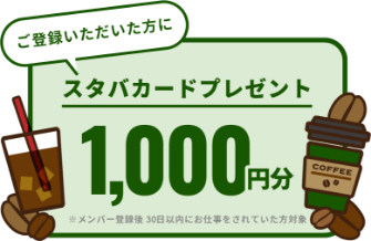 今なら、ご登録いただいた方にスタバカード1,000円分プレゼントしています!まずはお気軽にお問い合わせください。